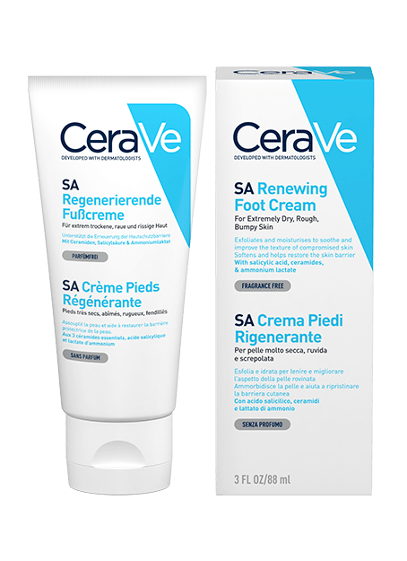 CeraVe® Обновляющий крем для ног эффективно отшелушивает и увлажняет сухую потрескавшуюся кожу ног, не раздражая ее.