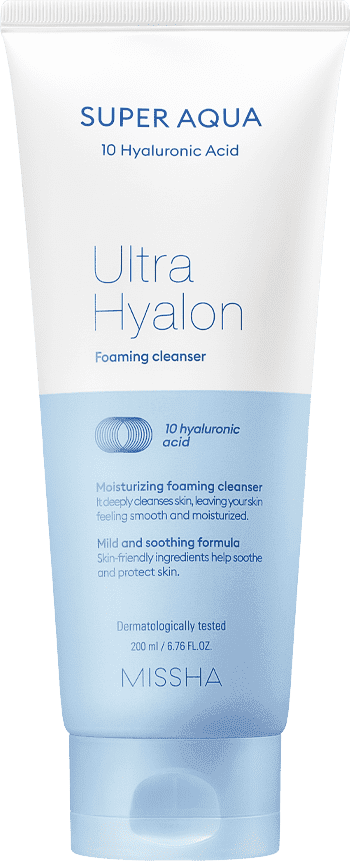 Очищающая пенка для лица MISSHA Super Aqua Ultra Hyalron Foaming cleanser содержит новый 10-ти ступенчатый комплекс гиалуроновой кислоты разной плотности. Густая и мягкая пена прекрасно справляется с удалением загрязнений. Мягкая формула, не оставляющая ощущения стянутости, подходит для ежедневного очищения. Не содержит искусственных отдушек. Дерматологически тестировано. Маннитол в составе обеспечивает легкую эксфолиацию, очищение пор. 10-ти ступенчатый комплекс гиалуроновой кислоты разной плотности увлажняет и поддерживает уровень влаги на всех эпидермальных слоях. Гиалуроновая кислота обеспечивает необходимый уровень увлажнения.