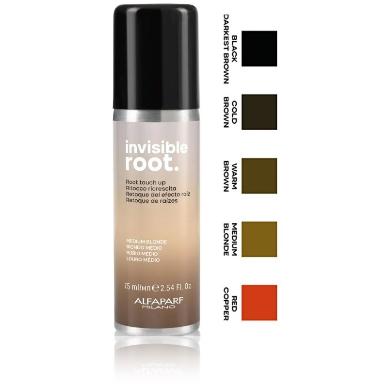 Спрей доступен в пяти оттенках: черный, холодный коричневый, теплый коричневый, красно-медный, блондин. Оттенки отлично сочетаются с палитрой красителей Evolution of the Color3 и Color Wear от Alfaparf Milano.