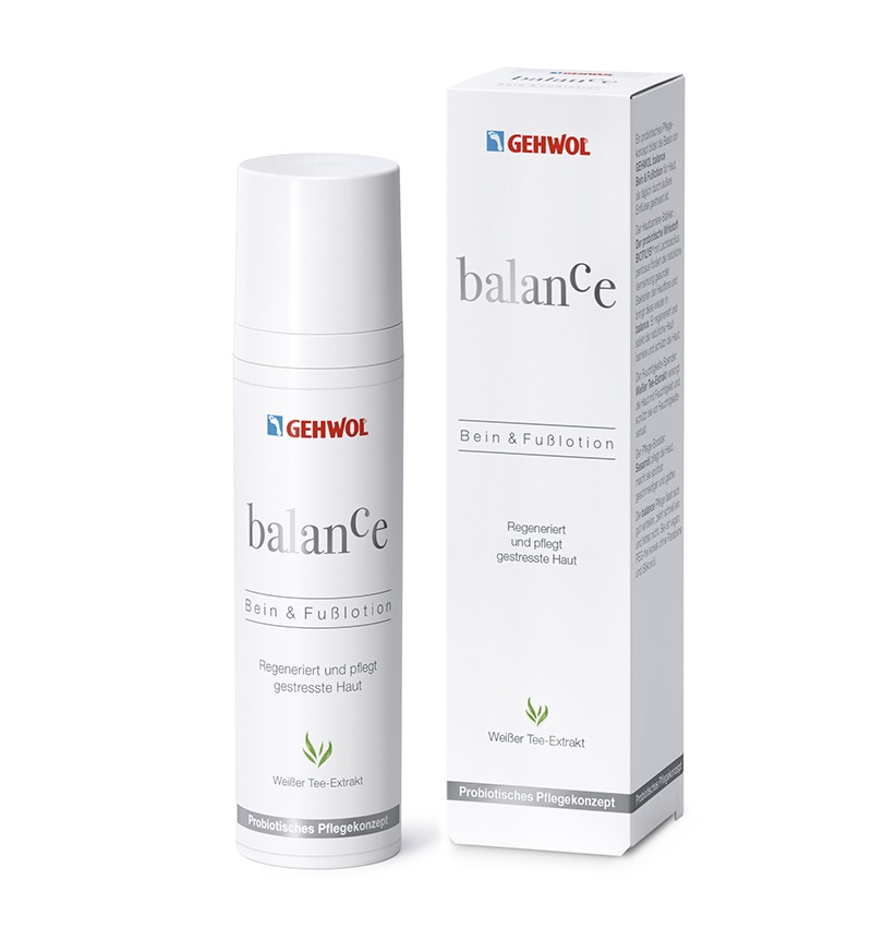Лосьон для ног и стоп "GEHWOL balance" – на основе пробиотиков. Пробиотик BIOTILYS® стимулирует и укрепляет защитные функции кожи. Экстракт белого чая увлажняет кожу и защищает от потери влаги. Кунжутное масло интенсивно ухаживает и восстанавливает кожу, благодаря чему она становится заметно более гладкой и эластичной. Средство имеет лёгкую текстуру, мгновенно впитывается и не оставляет ощущения “жирной плёнки”. Средство серии balance является веганским, не содержит ПЭГ, парабены и силиконовое масло.