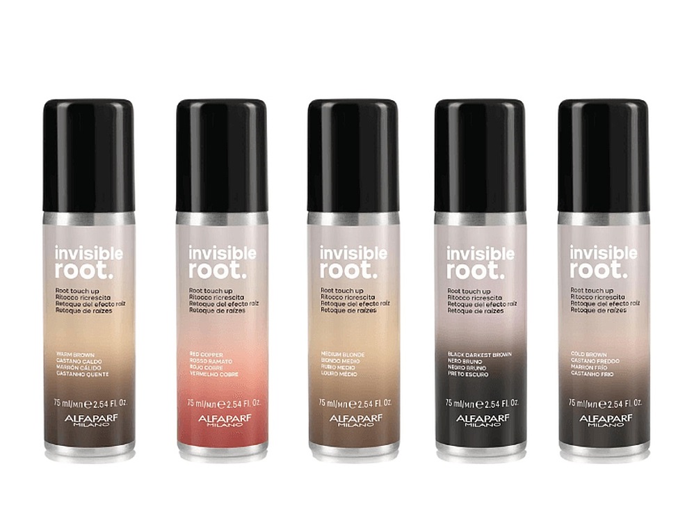 Спрей доступен в пяти оттенках: черный, холодный коричневый, теплый коричневый, красно-медный, блондин. Оттенки отлично сочетаются с палитрой красителей Evolution of the Color3 и Color Wear от Alfaparf Milano.