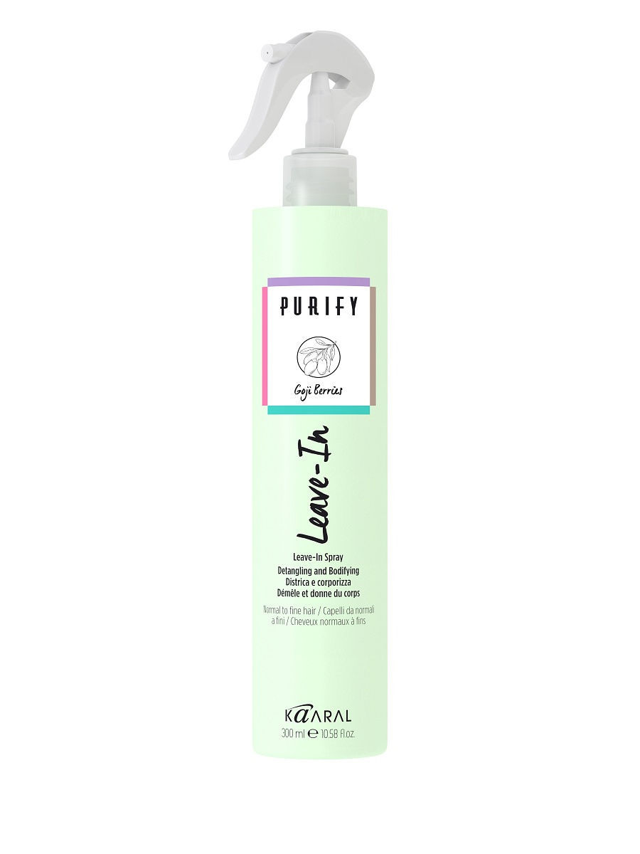 Спрей увлажняющий распутывающий для волос Purify Leave-in - это практичный спрей, обеспечивающий удобство расчесывания волос, не требующий смывания, и предназначен для нормальных и тонких волос. Благодаря натуральным действующим веществам с эффектом кондиционирования, защищает от воздействия горячих приборов, придавая силу, увлажненность и плотность сенсибилизированным и подвергшимся стрессу волосам, которые становятся легкими и прекрасно расчесываются.